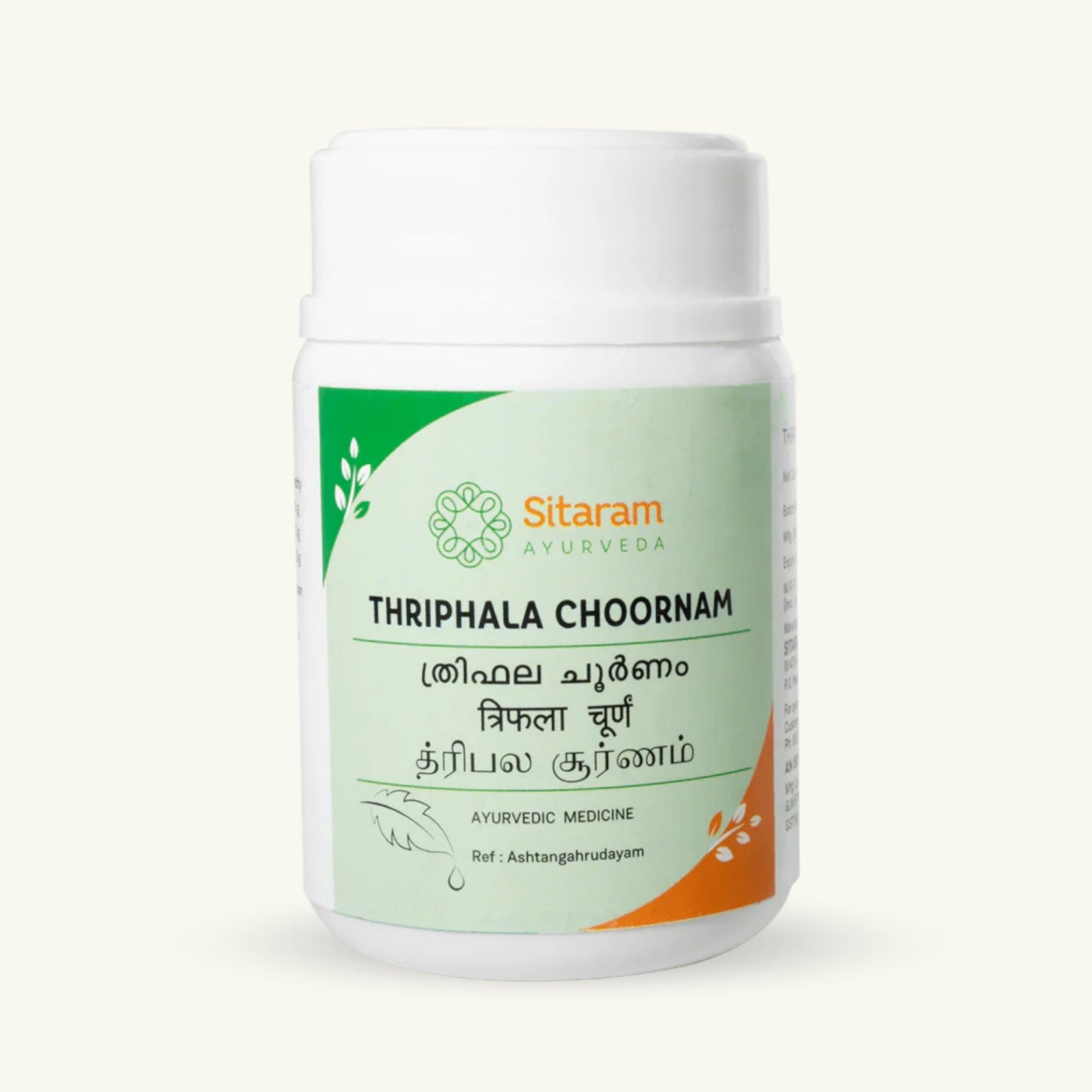 Triphala Choornam is a classical Ayurvedic herbal powder made from a traditional blend of three fruits. It is valued for its balance and versatility in daily routines.